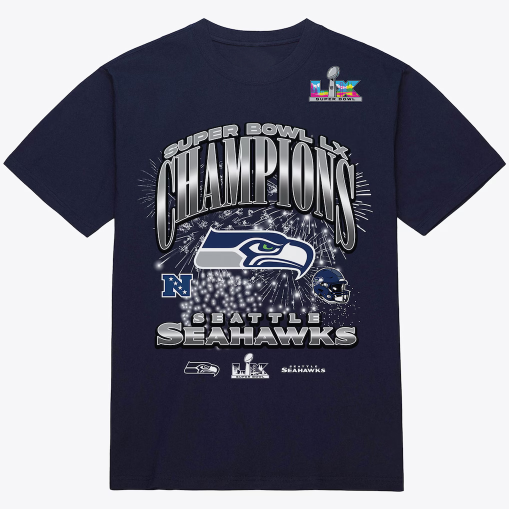 Designed on a rich navy base — a color truly synonymous with Seahawks identity — this shirt features standout Super Bowl LX Champions graphics, capturing the pride, unity, and unforgettable energy of a season that culminated in championship glory. With eye-catching lettering and spirited style, this tee is perfect for game days, victory celebrations, tailgates, or everyday fan wear.
