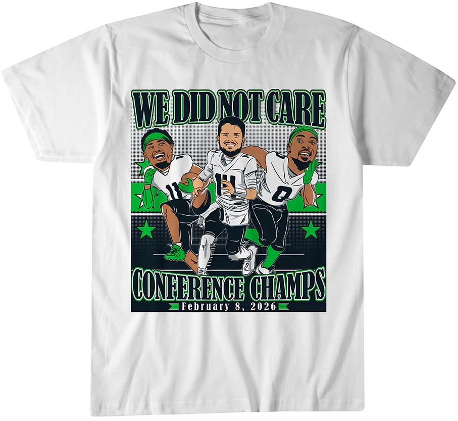 Featuring a striking “We Did Not Care” Conference Champions graphic with fun, high-energy caricatures of Sam Darnold, Jaxon Smith-Njigba, and DeMarcus Lawrence, the design highlights the offense’s spark, the receiver’s electric playmaking, and the defensive havoc that fueled the Seahawks’ rise. Whether you’re cheering at Lumen Field, celebrating with fellow 12s, or adding a unique championship piece to your collection, this shirt puts Seattle’s star power and attitude front and center.