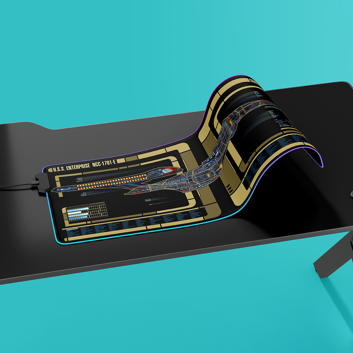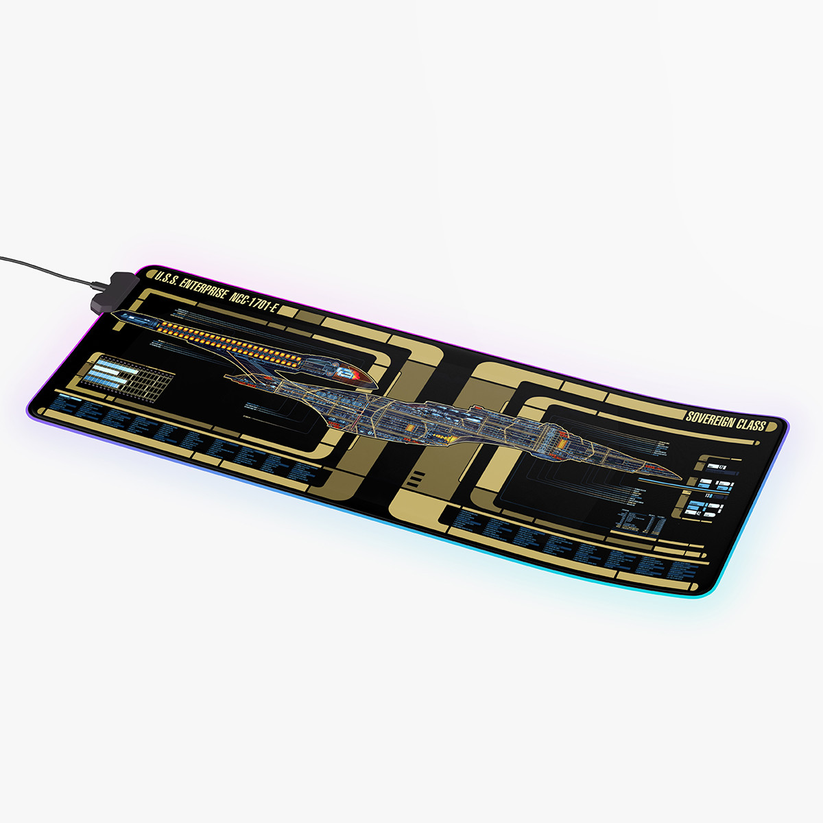 Sovereign Class - USS Enterprise-E LCARS Schematic LED Desk Mat