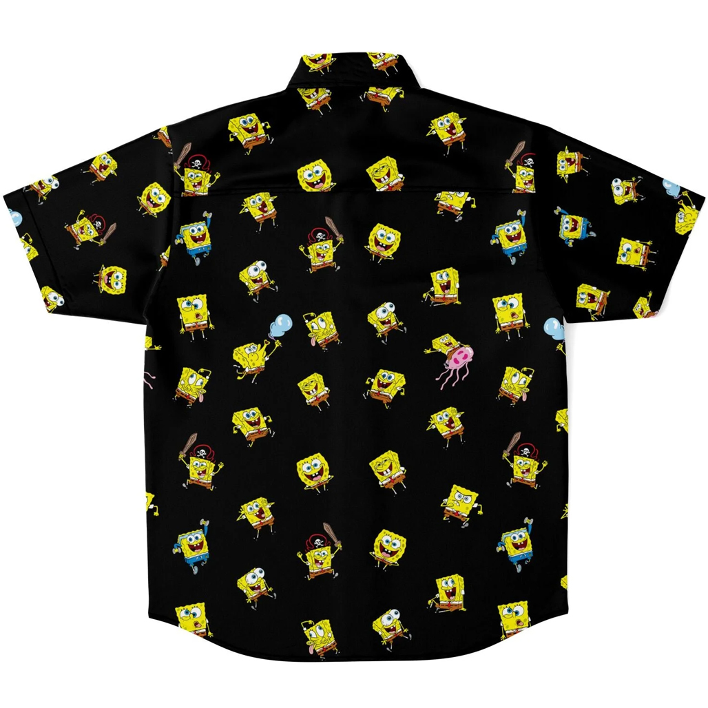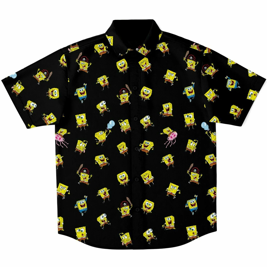 Show off your playful side with the SpongeBob Mood Black Hawaiian Shirt. Featuring expressive SpongeBob-inspired graphics on a sleek black background, this shirt blends humor and style for a fun, standout look.