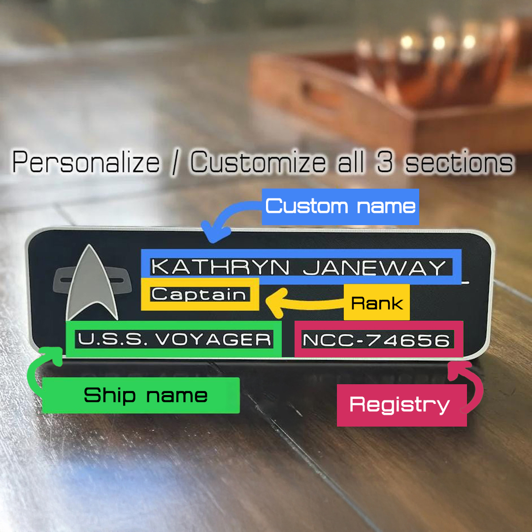 Bring the spirit of the final frontier to your workspace with this Star Trek-inspired personalized name plaque! Whether you serve aboard a Starfleet starship, command a starbase, or explore distant worlds, this custom piece instantly transforms any desk, door, office, or gaming setup into your own corner of the galaxy.