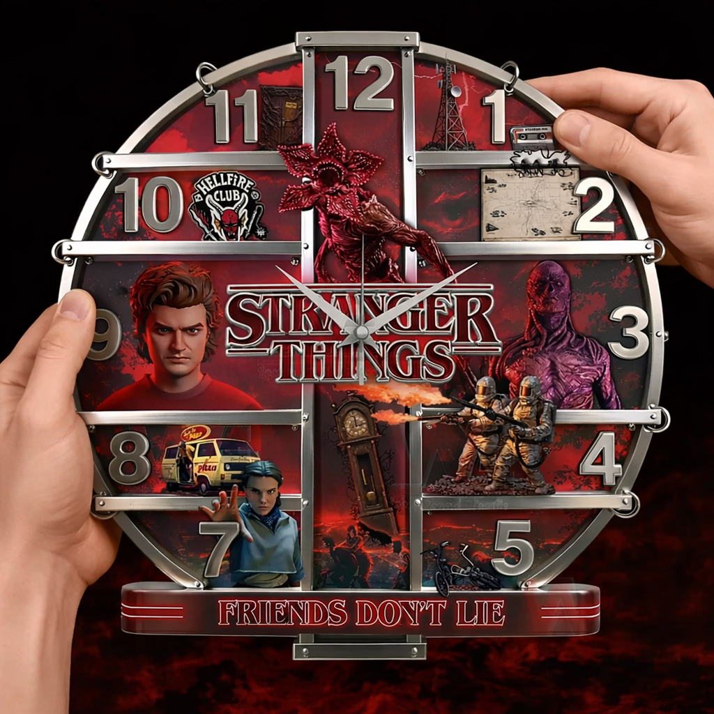 Bring the eerie charm of Hawkins, Indiana, into your space with the Stranger Things Home Decor 3D Wall Clock. This stylish and functional clock is the perfect addition to living rooms, bedrooms, offices, or game rooms, adding a bold touch of supernatural suspense wherever it’s displayed.
