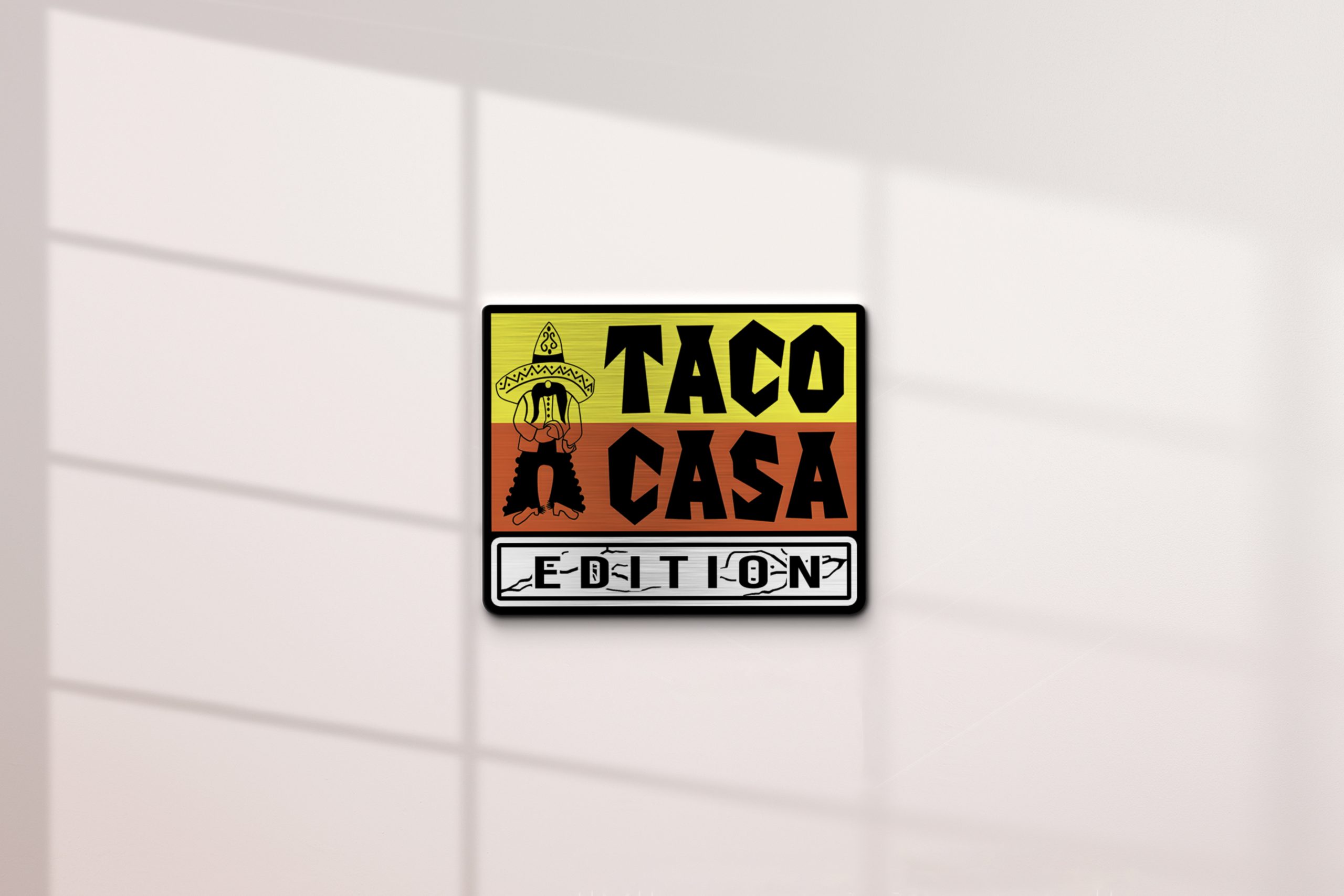 Laser-Engraved Acrylic – High-gloss acrylic with detailed laser engraving adds depth, texture, and a premium finish any Taco Casa fan will love.