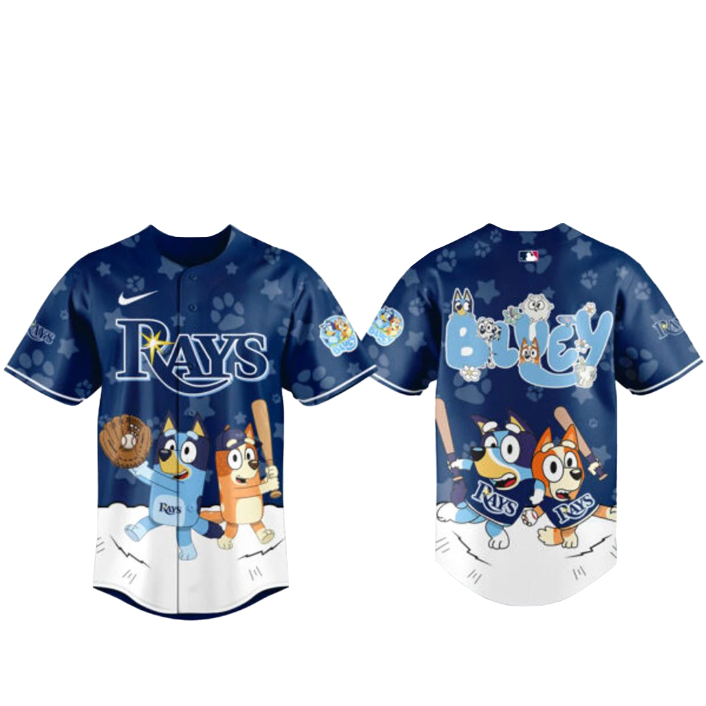 Whether you’re a dedicated Rays supporter, a Bluey fan, or someone who loves unique themed merchandise, this jersey makes a standout addition to any fan collection.