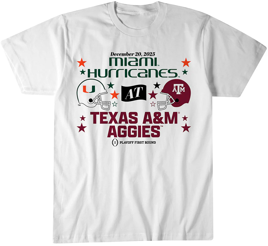 Texas A&M Aggies & Miami Hurricanes 2025 CFP First Round Matchup Shirt