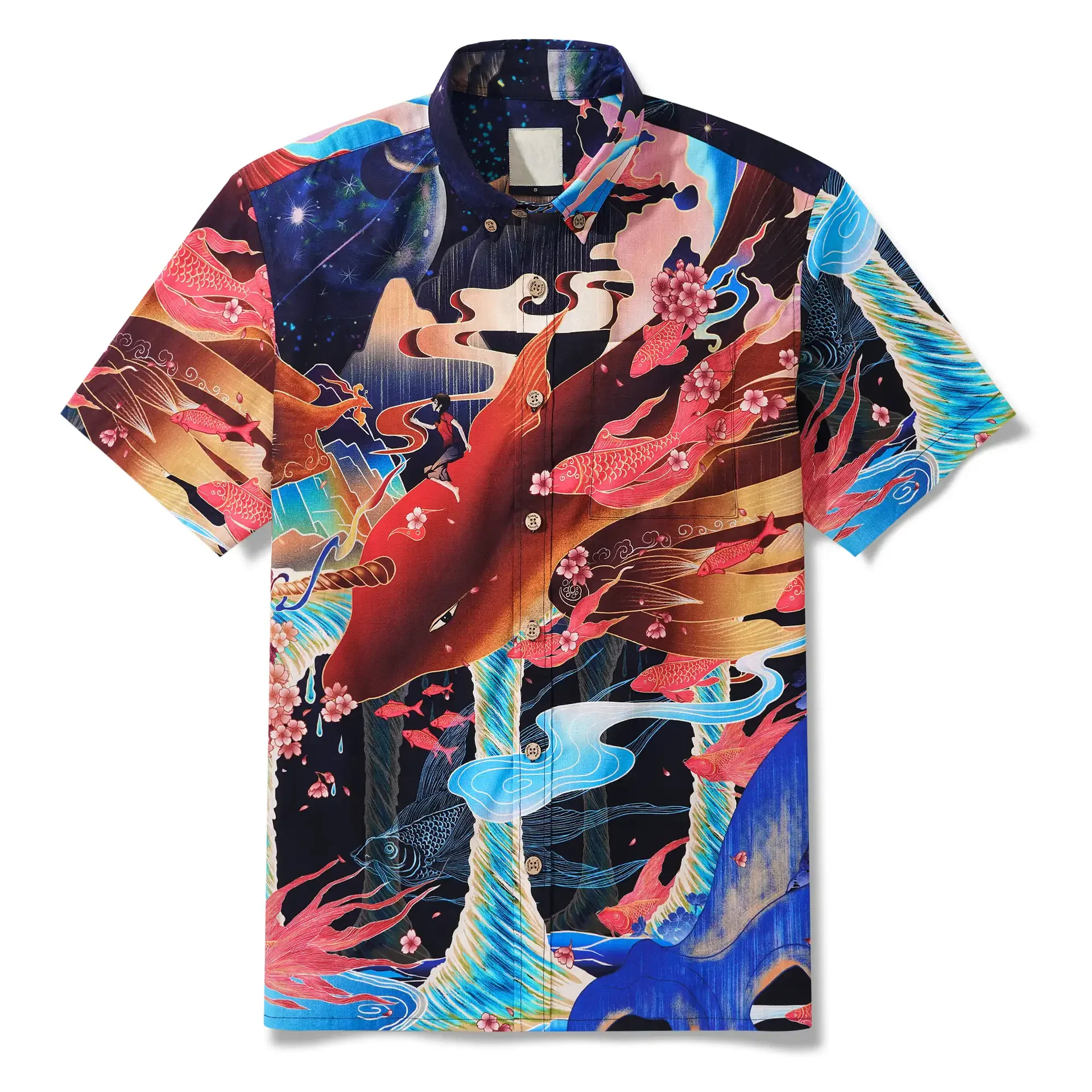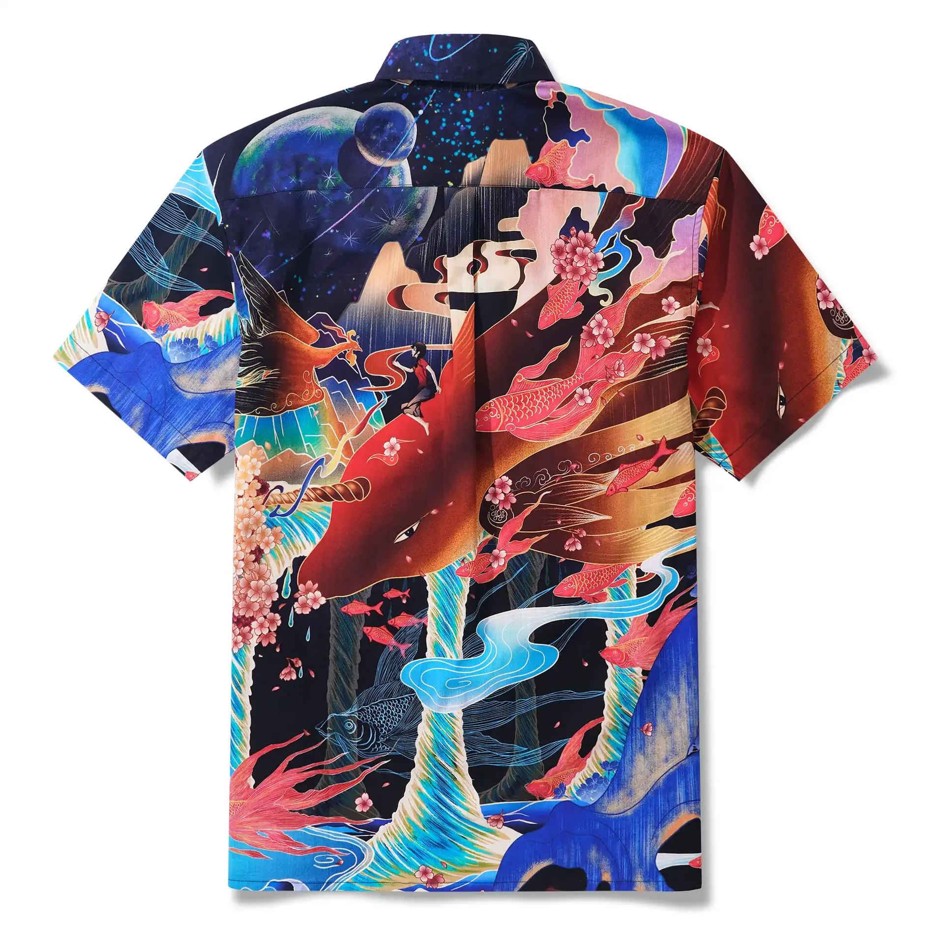 This Hawaiian shirt features a high-quality printed design showcasing big fish drifting through an enchanted underwater landscape. The artwork feels playful yet atmospheric, creating a visual experience that draws attention without overwhelming.