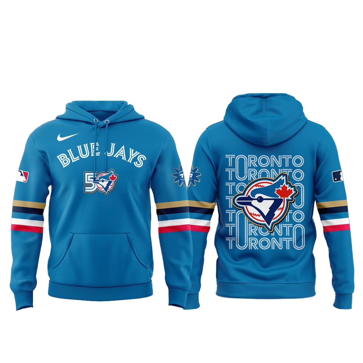 Soft, breathable, and easy to pair with jeans, hoodies, or jackets, this tee is great for ballpark nights, city outings, watch parties, or daily casual wear. Wherever you go, you’re carrying 50 years of Toronto pride.