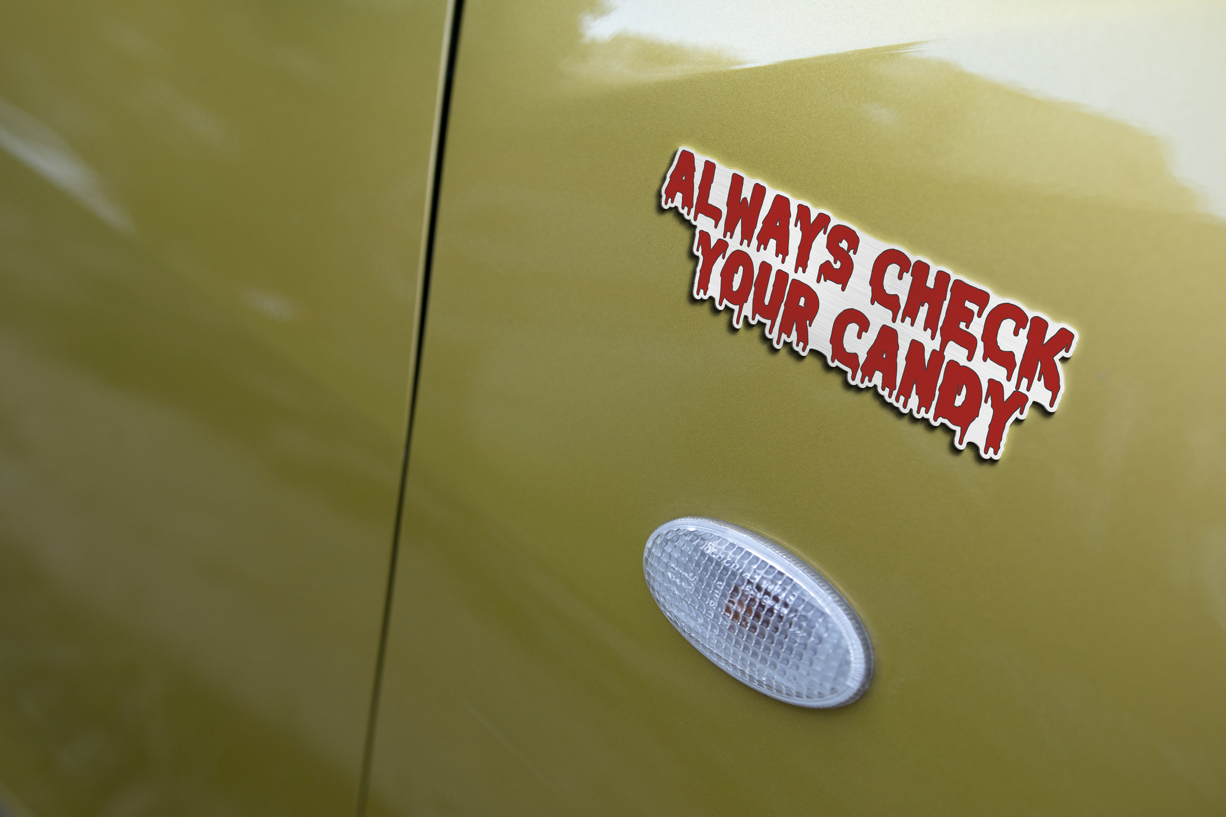 Trick ’r Treat Iconic Quote Edition Laser Engraved Car Emblem – Obey the Rules… or Pay the Price 🎃🔪🚗