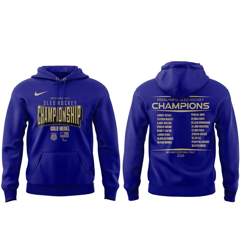 Graphic: USA Paralympic Sled Hockey Gold Medal Champions 2026 inspired design.