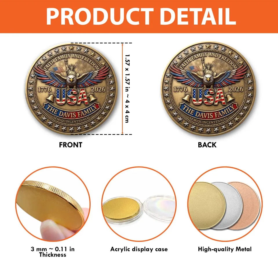 USA 250th Anniversary Coin 1776-2026 Commemorative Coin American Freedom