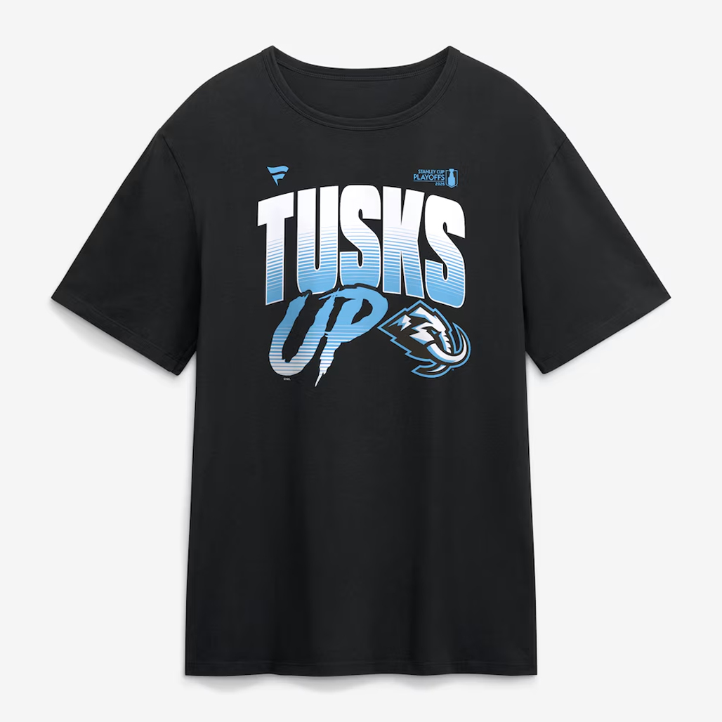 Show your playoff pride with the Utah Mammoth Black 2026 Stanley Cup Playoffs Slogan Tusks Up T-Shirt, a bold statement of strength, unity, and determination. This tee captures the fierce spirit of a team ready to charge through the postseason.